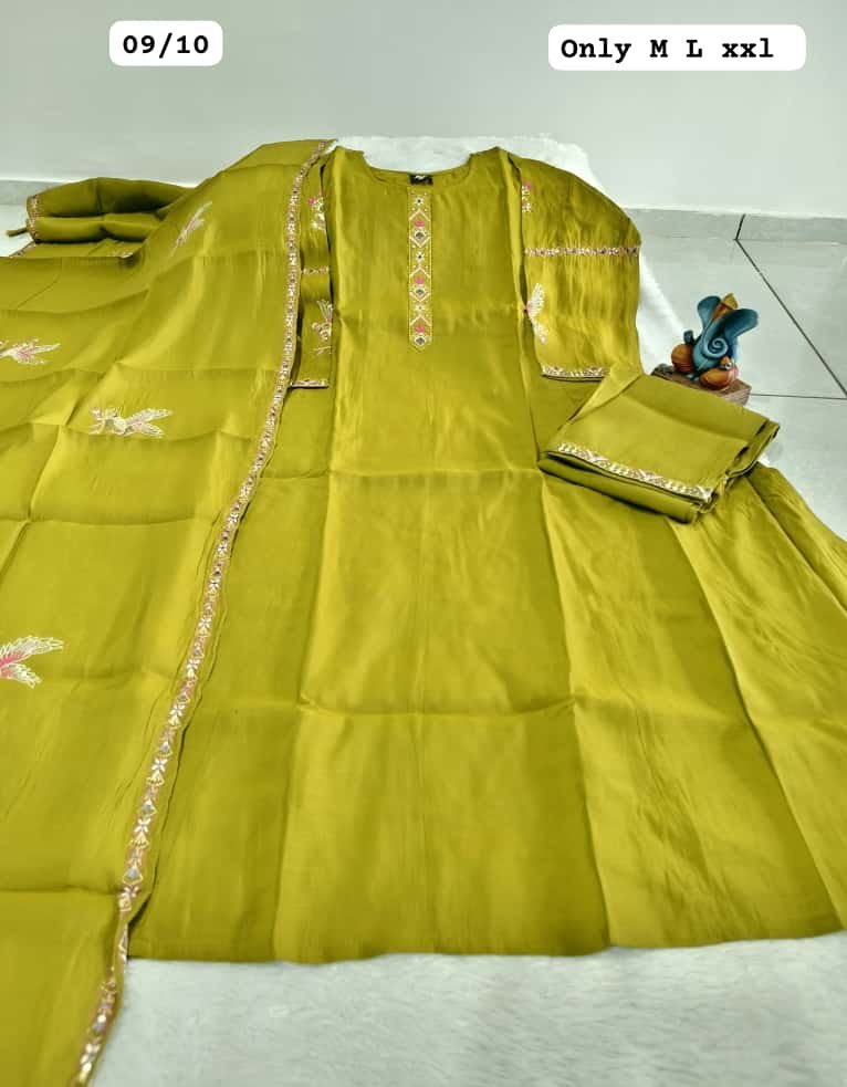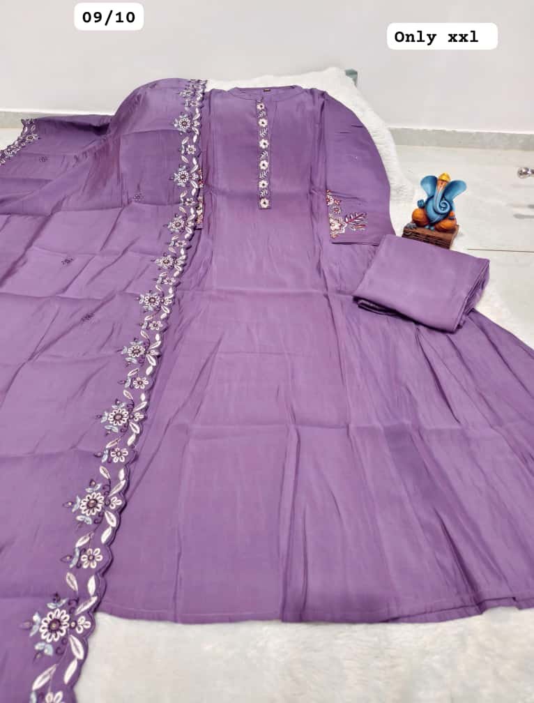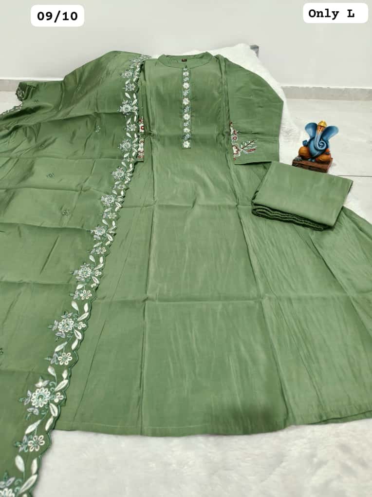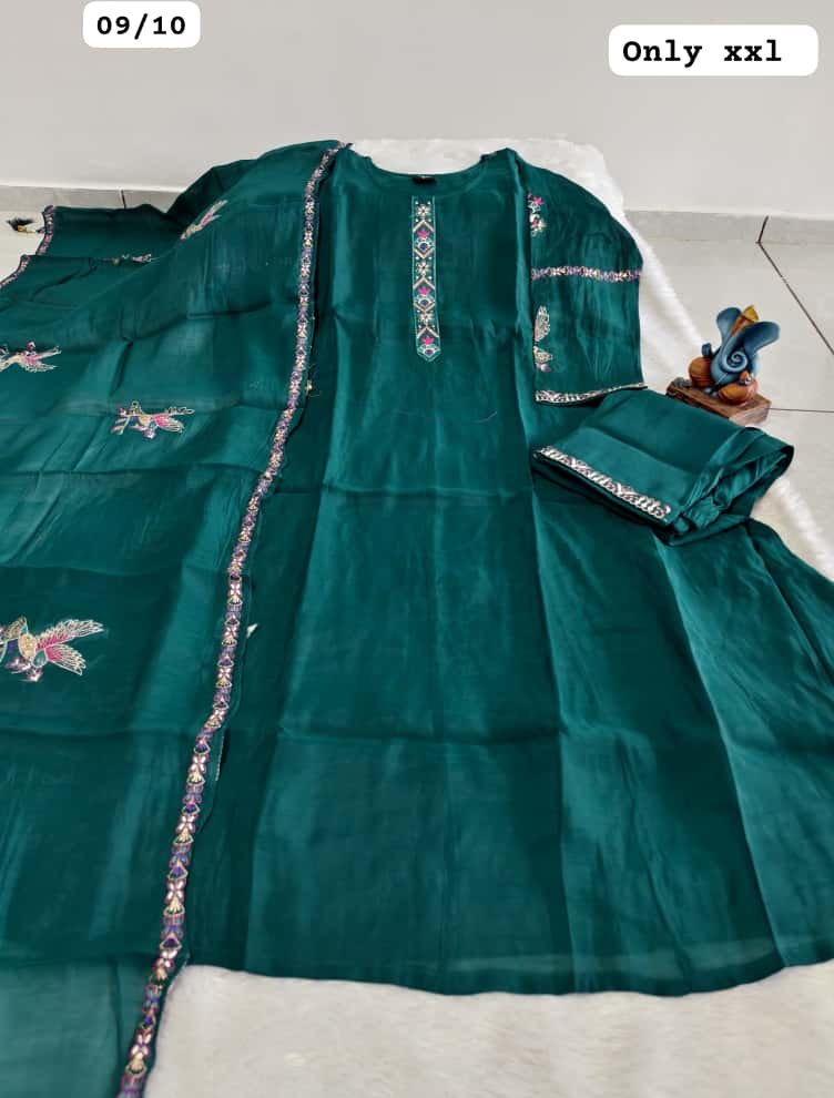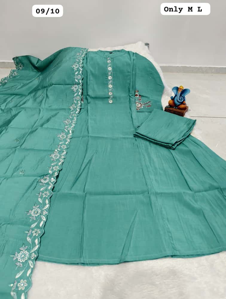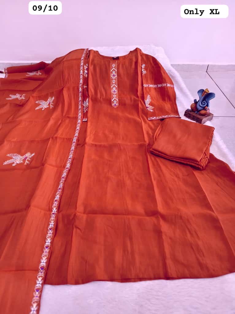 Upgrade your ethnic collection with this premium Roman Mal Silk Kurti Set, designed for women who love elegance with detailed craftsmanship. Featuring beautiful handwork on the neckline, sleeves, and back, along with a soft half cotton inner, this outfit offers both luxury looks and comfortable wear—perfect for festive events, parties, and special occasions.